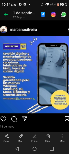 Reparaciones y mantenimiento de neveras ,FABRICADORES de hielo, aires acondicionados lavadoras cocinas eléctricas, lecherias Barcelona puerto la cruz 04148234873